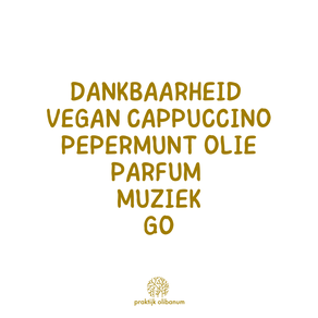Als de toon en intentie hiermee gezet is, maak ik mij klaar en start ik vol positiviteit en energie mijn dag. Ik doe nog even snel wat havermelk in de melkschuimer en zet een heerlijke bak koffie. Vervolgens druppel ik nog wat pepermunt olie op mijn tong voor wat extra energie, focus en concentratie. Dan doe ik nog wat parfum op, mijn oordopjes in met mijn muziek en dan ga ik met die banaan. Dat is nog zo iets, wanneer je dankbaarheid voelt voor iets wat je nog niet helemaal hebt, kun je dat wat je graag wilt zien ook aantrekken. Zo iets als manifesteren is dat dan. Dus, Toedeledoekie! Bedankt voor het fantastische resultaat van vandaag!